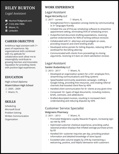 Legal assistant resume example ✓ complete guide ✓ create a perfect resume in 5 minutes using our resume examples & templates.